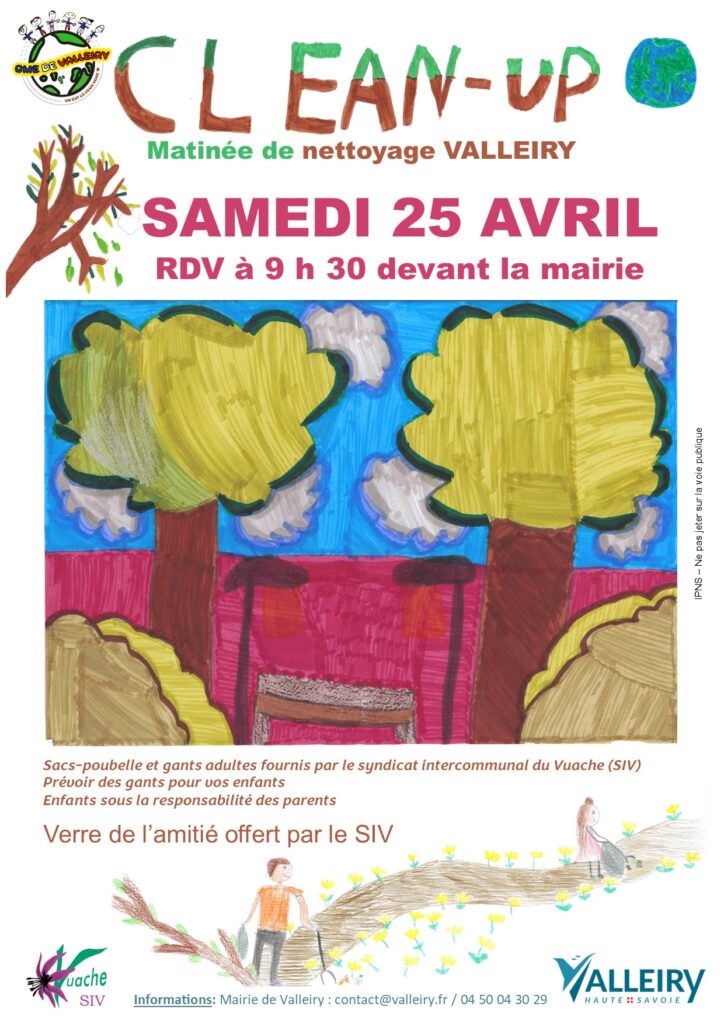 La commune de Valleiry, le Conseil municipal des enfants de Valleiry et le Syndicat intercommunal du Vuache (SIV) vous proposent une matinée de nettoyage de la commune.